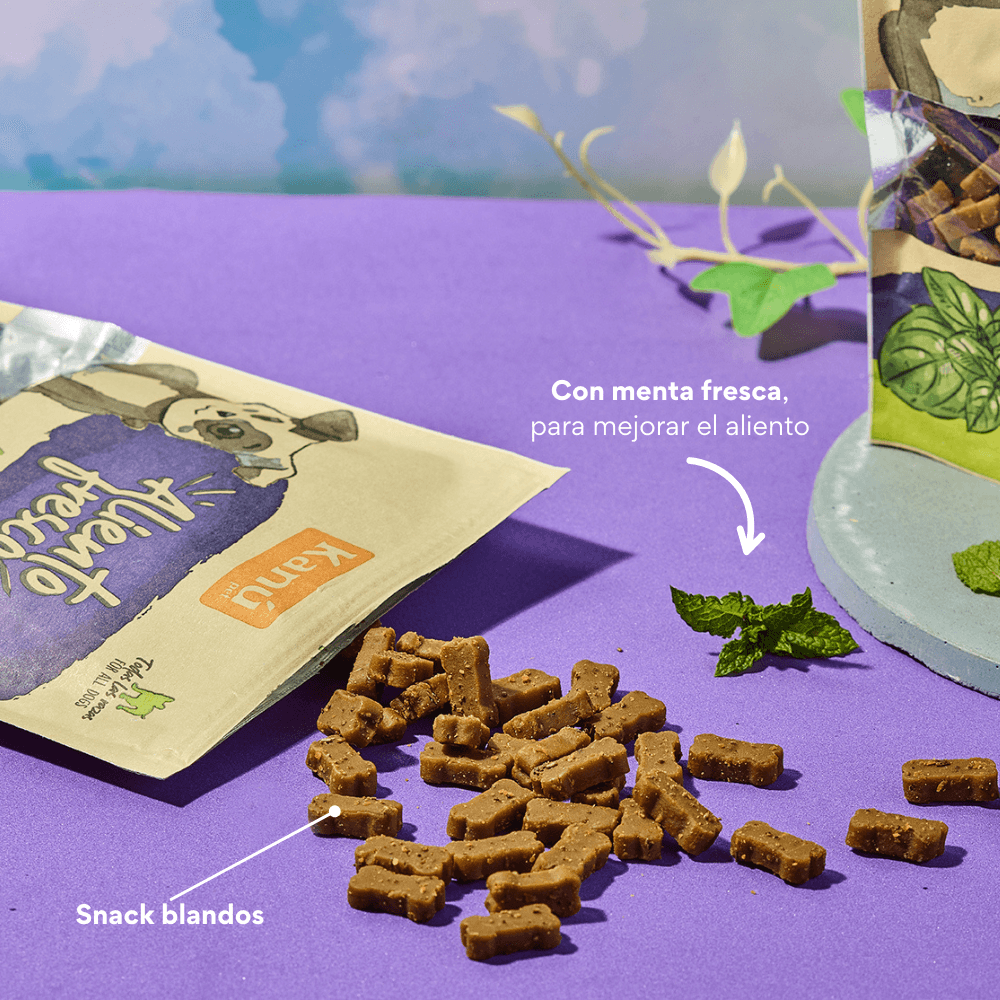 Las Galletas Kanú Aliento Fresco son un snack blando y delicioso para perros, formulado con menta fresca para ayudar a controlar el mal aliento. Cada croqueta tiene un tamaño aproximado de 2cm x 1cm, siendo ideal para todas las razas. Estas galletas no solo mejoran el aliento de tu mascota, sino que también contribuyen a una buena digestión, formando parte de una dieta equilibrada.